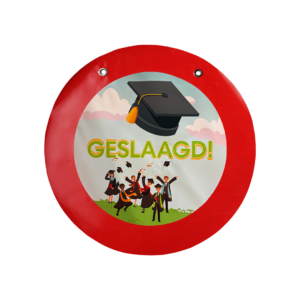 Deze banner met daarop de tekst ‘75 jaar’ hoort bij onze Abrahampoppen en Sarahpoppen. De banners zijn van stevig materiaal en geschikt om buiten te gebruiken. Daarnaast zijn ze eenvoudig te vervoeren en te bevestigen.