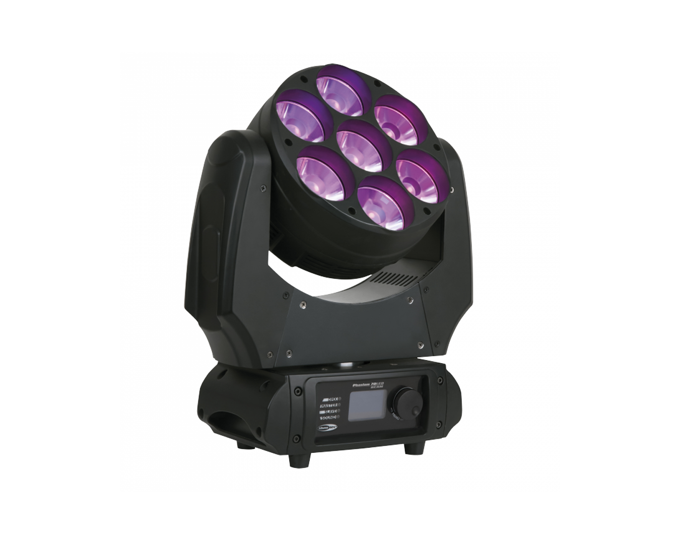 Deze lamp is een ‘Moving Head’, wat inhoudt dat de lamp zelf kan ronddraaien en dus zorgt voor extra sfeer en beleving. Door de verschillende kleuren en diverse lichtstralen komt hij op vele soorten evenementen goed tot zijn recht.