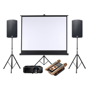 Wij leveren een tablet mee, waarmee je de karaoke apparatuur kunt bedienen. Zo kun je vanaf de tablet nummers zoeken en selecteren, en kun je instellingen wijzigen. Ook zorgen wij voor de bekabeling om de karaoke apparatuur aan te kunnen sluiten op je scherm en geluidsinstallatie.